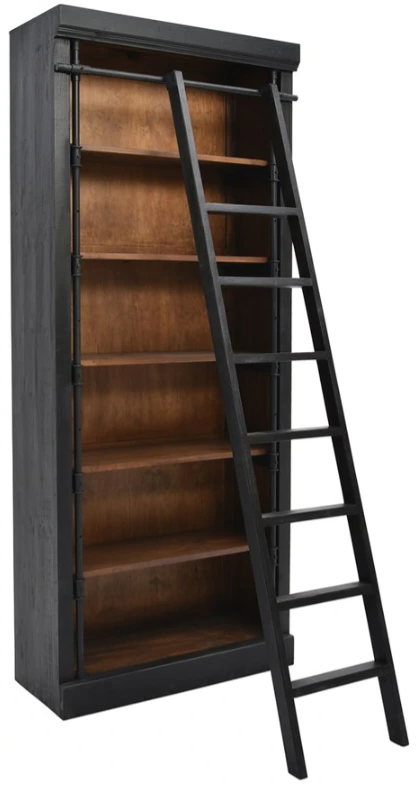 Crafted from Brazilian pine wood solids in a rich dark mocha finish, this functional ladder features seven sturdy rungs and black-finished metal hooks at the top, allowing it to securely slot onto a compatible bookcase. Designed for both style and accessibility, it adds charm and practicality to any tall shelving unit.Read More