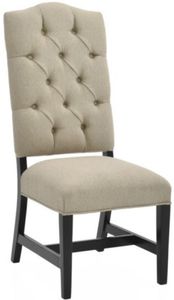 With an upholstered back and seat covered in a woven beige performance fabric, this side chair features a button tufted back and tapered legs in an ebony finish. Built for everyday use, it offers dependable construction and inviting comfort for family meals or casual gatherings.Read More