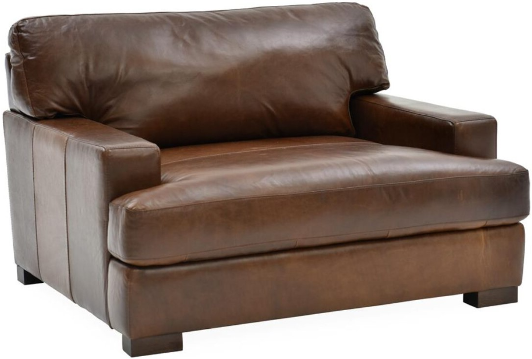 Quality crafted in Italy, this top-grain pure aniline deep chestnut brown chair features plump attached back cushion, padded track arms, subtle stitched accents on the seat cushion, tailored base and block feet in a dark mahogany finish.Read More