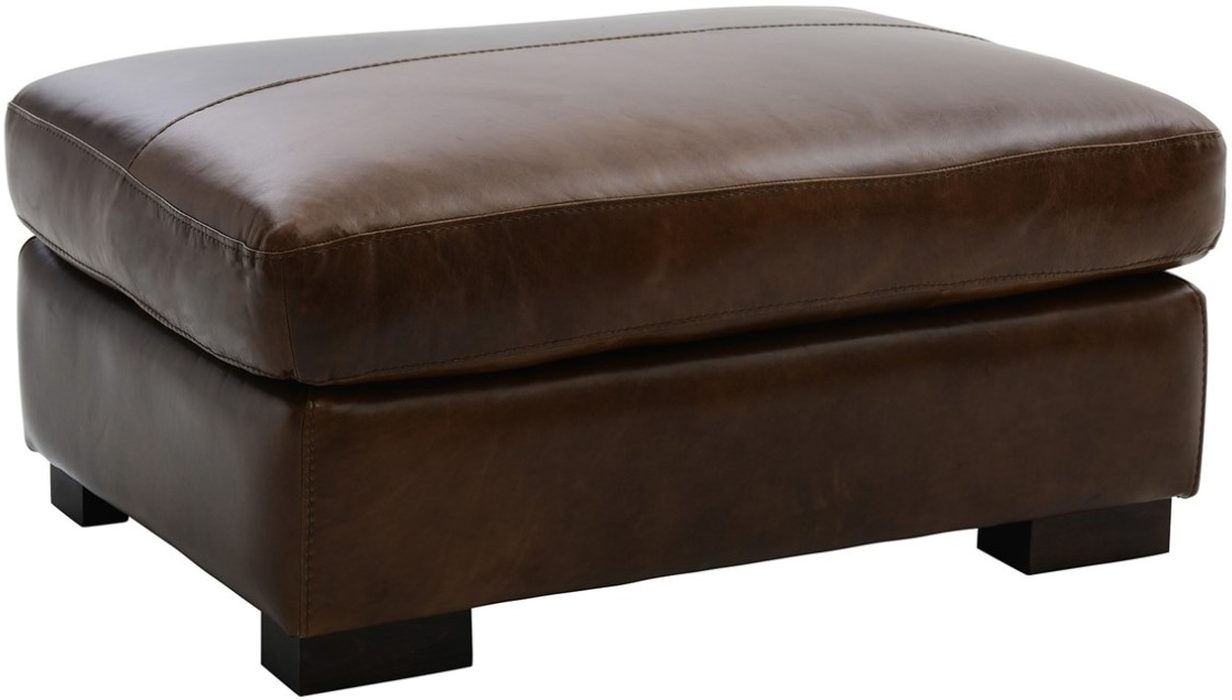 Upholstered in luxurious Italian chocolate brown top-grain leather, this ottoman offers both elegance and comfort. It features a plush, generously padded cushion, refined stitched detailing, a neatly tailored base, and sturdy block feet in a dark brown finish for timeless appeal.Read More