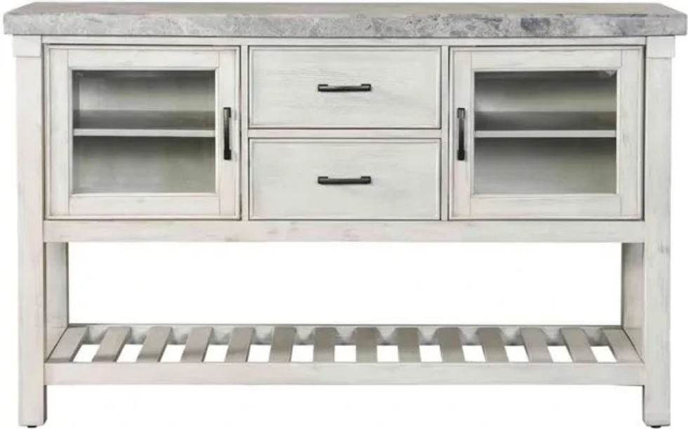 A casually elegant server in a neutral palette, Canova fits the bill as a dining companion piece. A cathedral white wood finish pairs beautifully with the solid gray marble veneer in a piece that can be used in classic, contemporary or farmhouse decors.Read More
