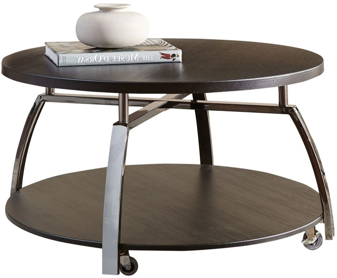 Cocktail table has casters for easy mobility