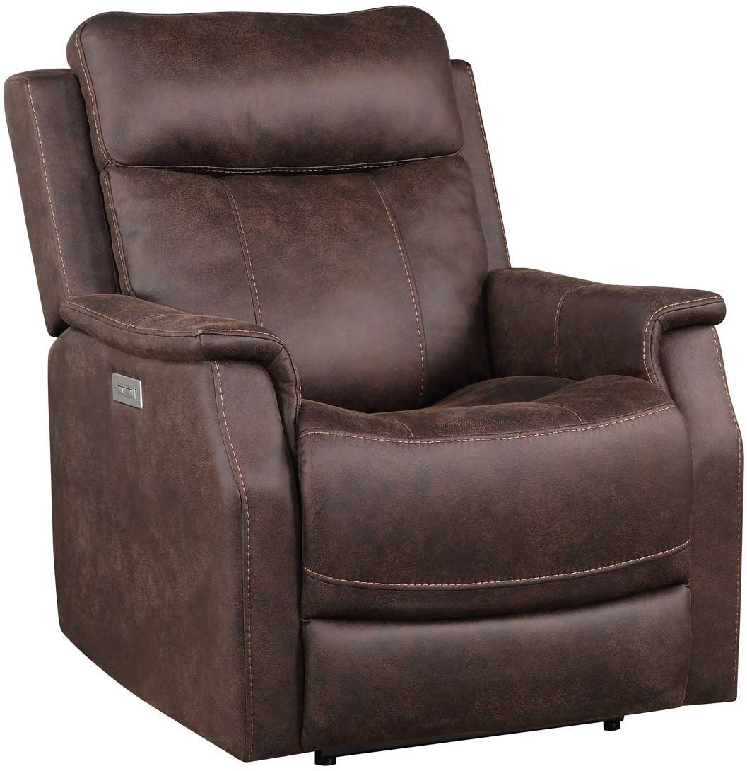 The Valencia dual-power recliner adds clean contemporary styling to reclining comfort in this functional compact chair. The warm walnut leatherette cover has the appearance and texture of a nubuck leather application without all the maintenance in this easy-care application.Read More