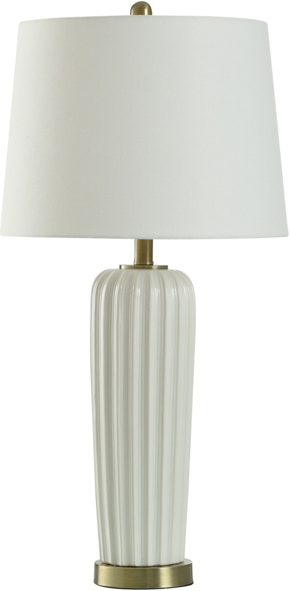 Stylecraft Ceramic White Table Lamp features white base and white drum shade.Read More