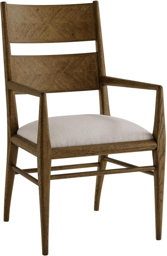 Seen here in our Dusk finish with tapered oak leg, the Nova dining arm chair is a classic with hand-carved oak and a parquetry design. Striving for functionality, this upholstered seat is constructed with a top and mid rail bar joined by stretchers.Read More