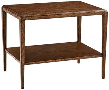 This rectangular side table showcases an oak parquetry patterned top and bottom tier, enhanced by the rich Dusk finish. Rustic tapered oak legs connect the tiers, blending traditional craftsmanship with a modern edge for a warm, textured accent in any space.Read More