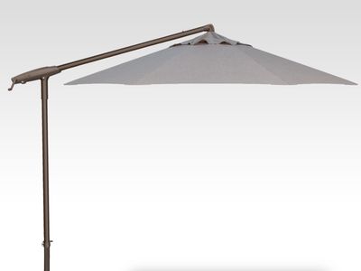 This cantilever umbrella’s canopy is bliss sand and features a wind vent, a bronze finished aluminum frame and pole, a 100% Kevlar mesh lift cord for added strength and durability, tilts left to right up to 90° and rotates 360°.Read More