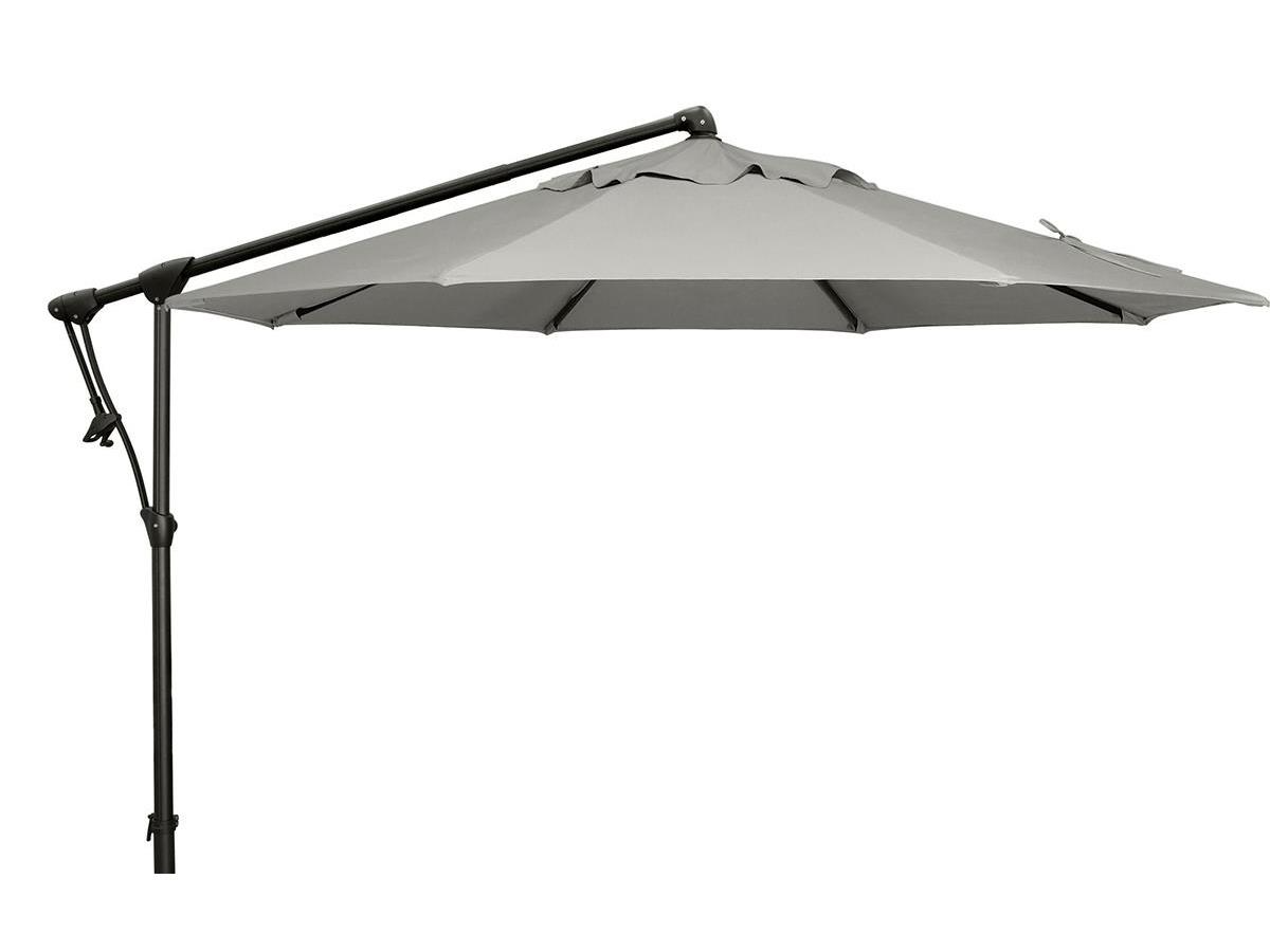This cantilever umbrella in cast silver has a black finish and features 100% Kevlar Mesh Lift Cord for added strength and durability. Tilts left to right up to 90° and rotates 360°.Read More