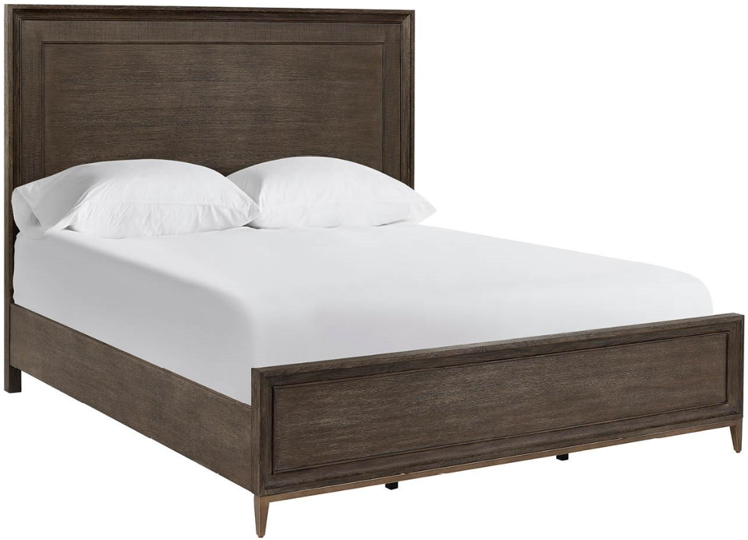 The Montclair panel bed offers a contemporary interpretation of traditional panel construction with an innovative inset band in embossed cocoa finish. Rich cocoa framing provides elegant contrast, while the metal footboard support with tapered legs adds sophisticated modern appeal.Read More
