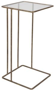 Minimally designed with versatility, this petite hand forged iron side table is finished in heavily antiqued gold with a clear tempered glass top.Read More