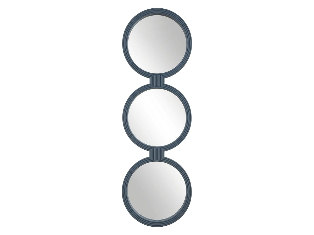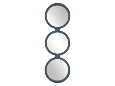 Three interconnected round mirrors, each framed with a continuous ribbed texture in a muted blue-gray finish, creating a piece that works as a functional focal point in your space.Read More
