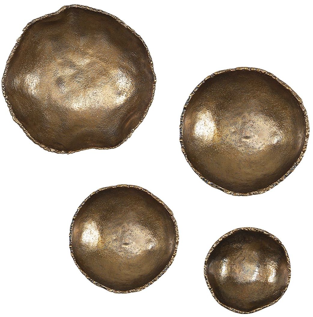 Handcrafted from aluminum, these metal wall bowls feature noticeable textural elements with organic edge details and are finished in vintage brass. May be hung on a wall with keyhole hangers, or displayed as tabletop accessories.Read More