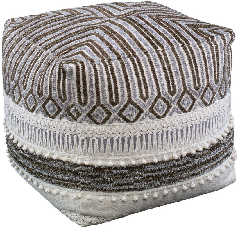 Evocative of mid-20th century woven art, the Malibu Pouf uses a wide variety of embroidery and knotting techniques. Boucle and chenille yarns in natural, gray, and taupe colors combine to become a fabulous art statement that will add relaxed elegance and interest to any seating area.Read More