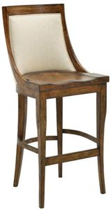 With a distressed rustic pecan finish, this bar stool features a padded inset on the back covered in a woven light sand performance fabric, saddle seat for comfort and slightly tapered legs.Read More