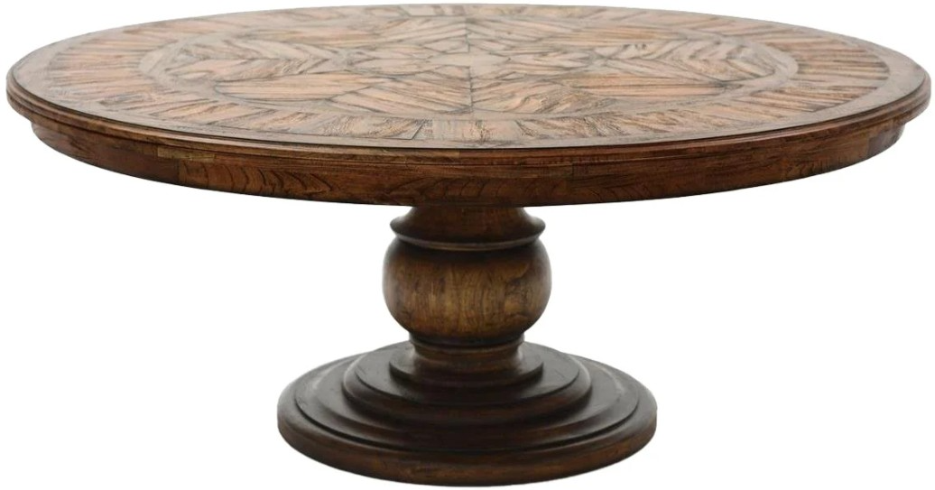 Blending classical and architectural elements and patterns, this vintage style dining piece is crafted of hardwoods and features a distinctive parquet veneered top and round pedestal base., making it a beautiful centerpiece for both everyday meals and special occasions.Read More