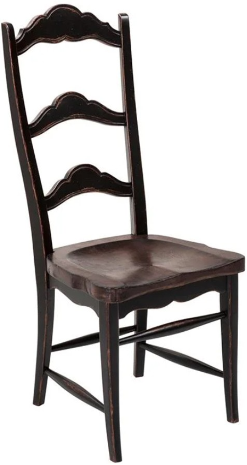 The rustic Provincial dining collection features your choice of finishes and styles. This ladderback dining chair offers a combination black-washed finish on back and base and scooped seat in a dark rustic pecan finish.Read More