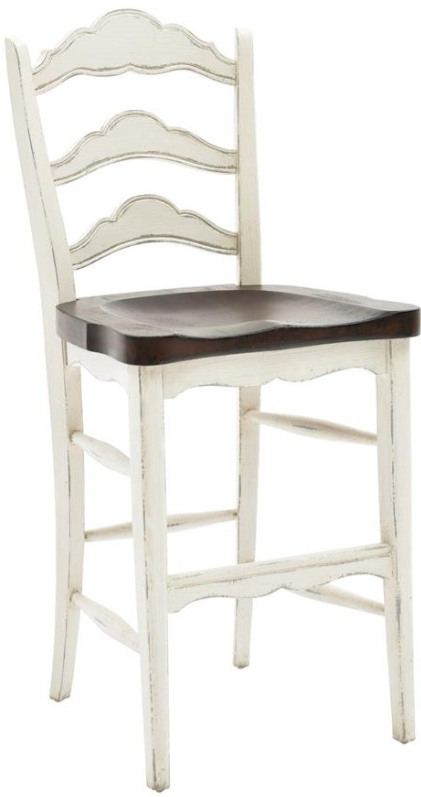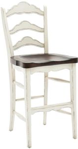 Country French counter stool that includes scalloped ladderback with scooped seat and stretcher base. It offers a timeless two-tone look. Crafted from durable wood, this stool adds character and functionality to kitchen counters or casual dining spaces.Read More