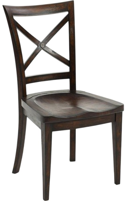 Crafted of select hardwood solids in a slightly distressed rustic pecan finish, this dining chair features a ladder back with some graceful shaping, scooped seat for comfort and splayed legs.Read More