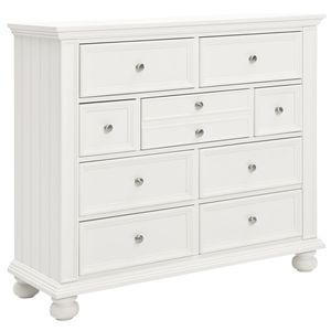 Classic New England style in 3 finishes. This beautiful collection is accentuated by the generous use of moldings and wainscot paneling. Heavy drawer construction with English and French dovetailing.