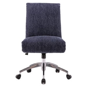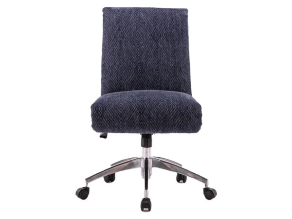Upholstered in a navy woven fabric with a tone-on-tone pattern, this desk chair features a padded back and seat cushion, and a five-star metal base in a nickel finish with casters.